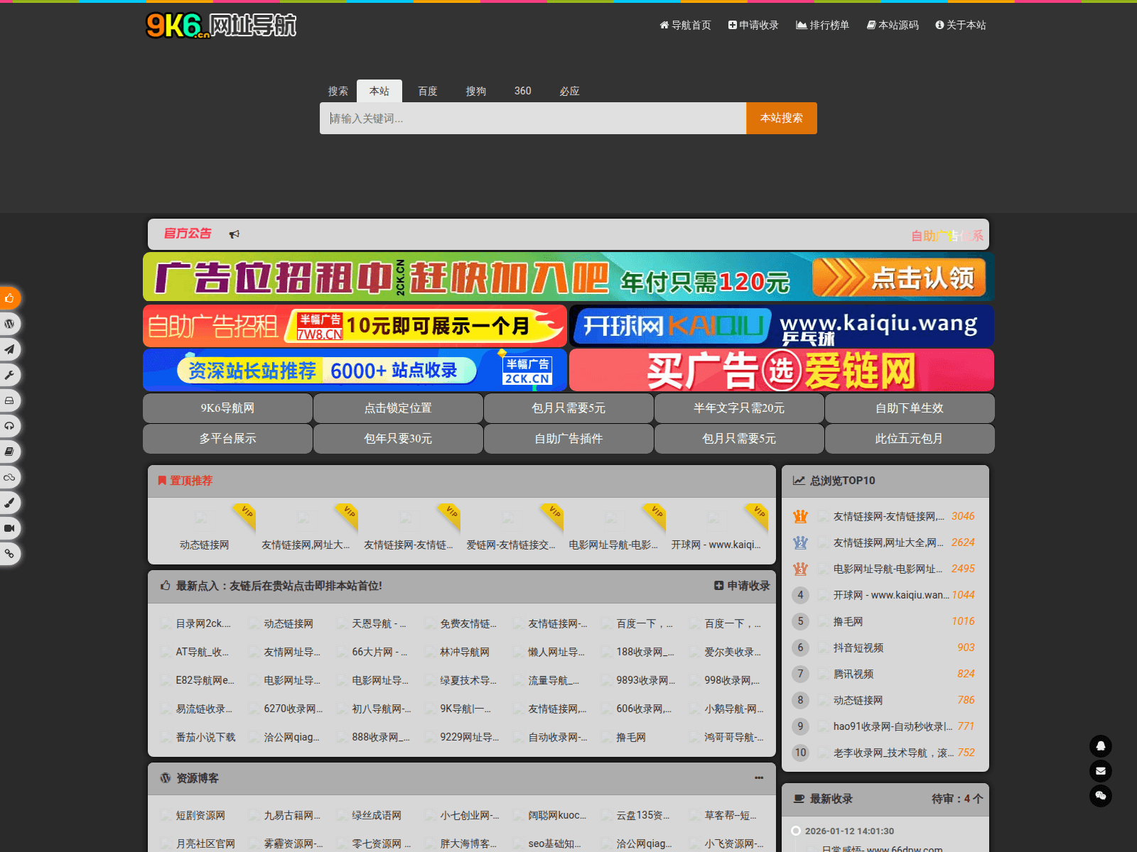9K6导航网9K6.cn- 全新架构自动秒收录网址导航,实现自主提交,自动化收录,打造百万网址库